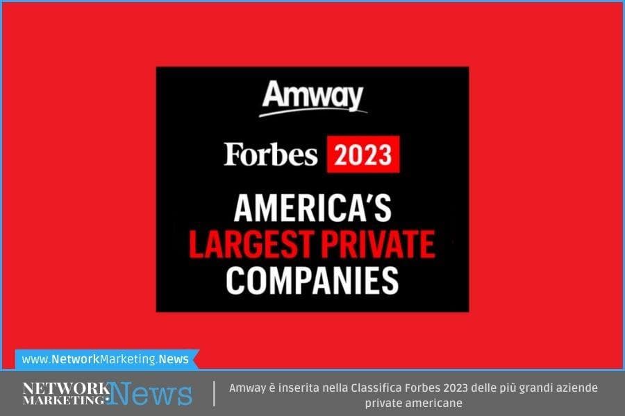 Amway ha ottenuto un notevole riconoscimento nella Classifica Forbes del 2023, una prestigiosa rivista statunitense che classifica le principali aziende americane private. Si è posizionata al 70° posto su 258 imprese, come l’unica azienda nel settore del network marketing ad essere insignita di questa prestigiosa identificazione.