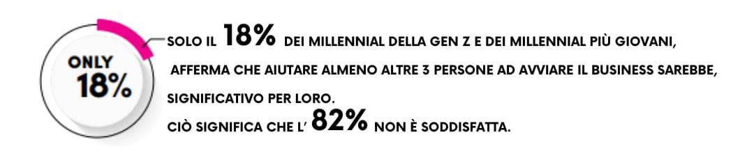 Questa resistenza a formare un team, condividere le opportunità di business con altri e la generale insoddisfazione verso l'idea di guidare gli altri, rappresenta l'unica criticità in uno studio che risulta essere molto positivo. Non solo questa era una delle aree in cui la Generazione Z e i Millennial più giovani erano allineati, ma il loro allineamento e la loro negatività sull'argomento indicano la sfida più grande che tutti dovranno affrontare negli anni a venire.