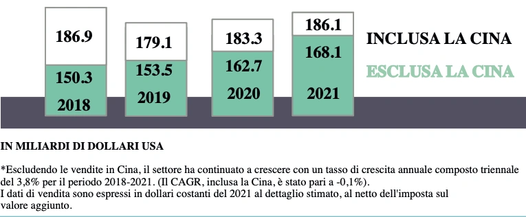 Escludendo la Cina, i mercati emergenti sono cresciuti del 2,9% nel 2020, con un tasso di crescita annuo composto triennale del 5,1% (2018-2021), continuando a superare la crescita complessiva del settore.